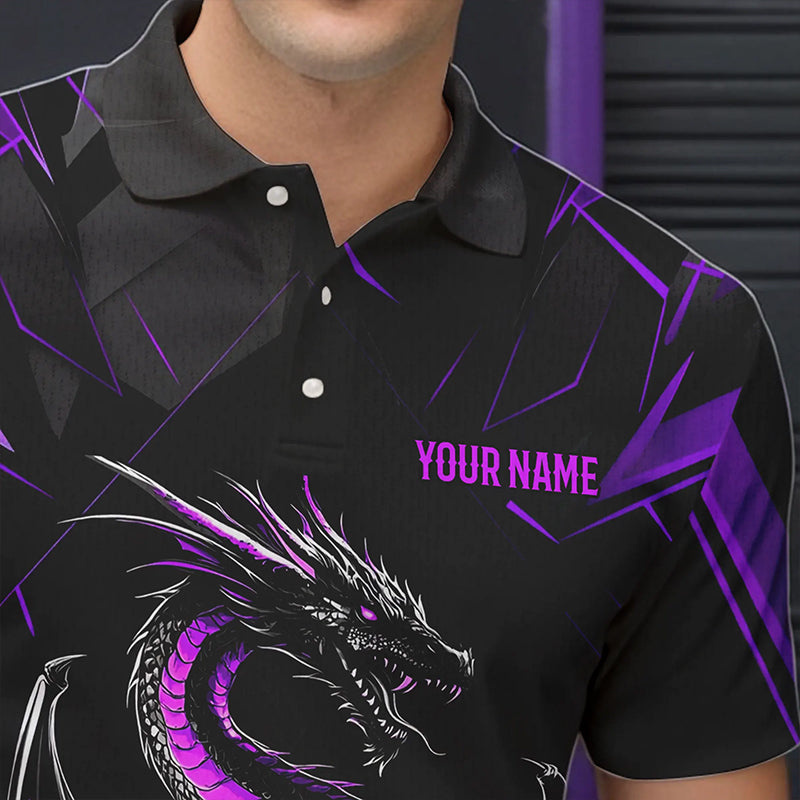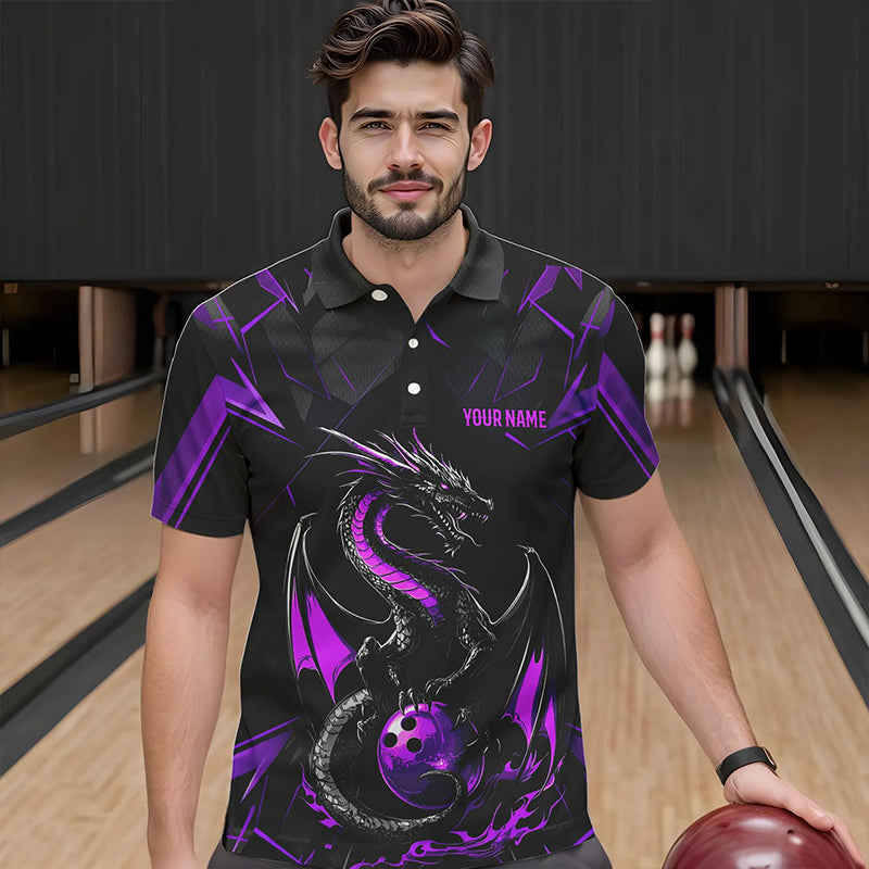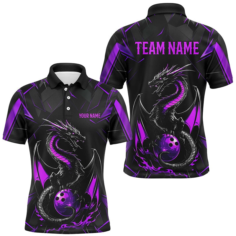 Custom Black And Purple Dragon Bowling Shirts For Men, Dragon Bowling Team Shirts Uniform IPHW7314