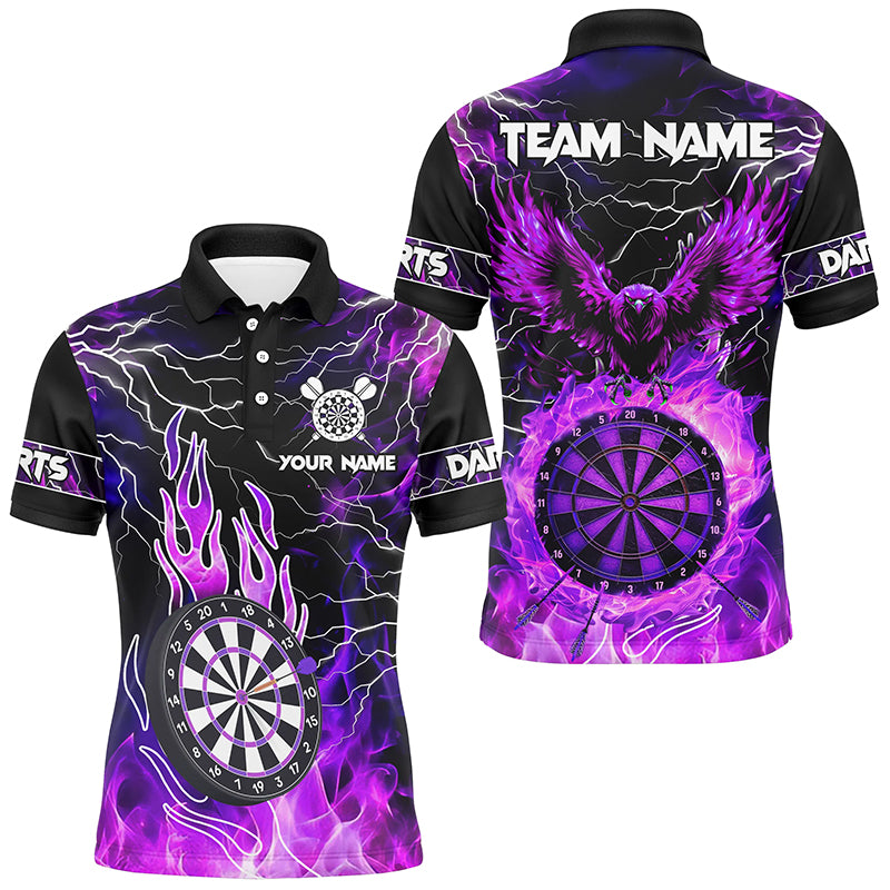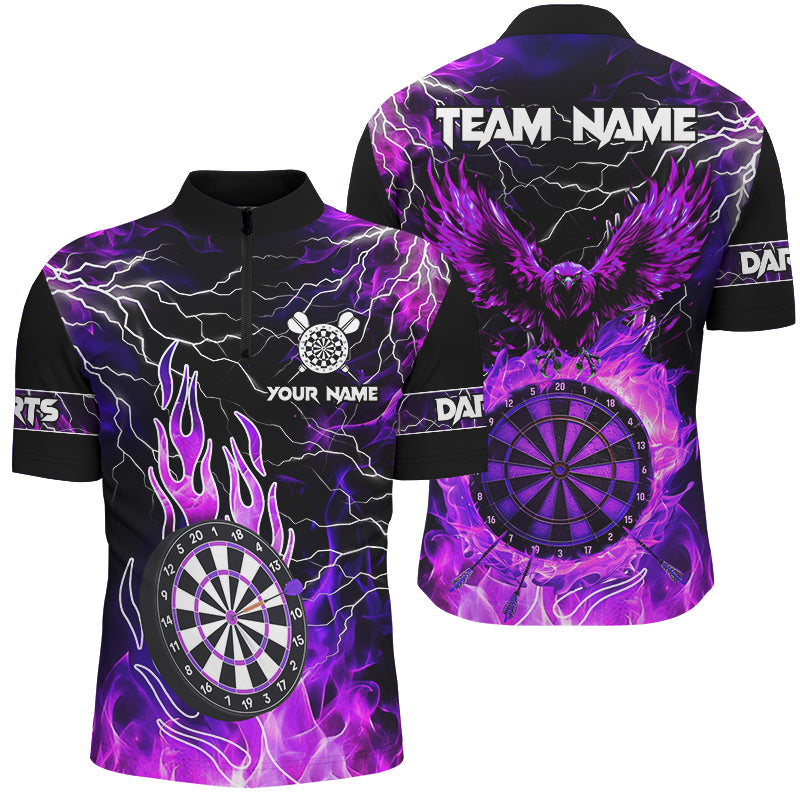 Purple Dart Board Fire Flame Custom Eagle Dart Shirts For Men, Thunder Lightning Dart Team Jerseys TDM2877