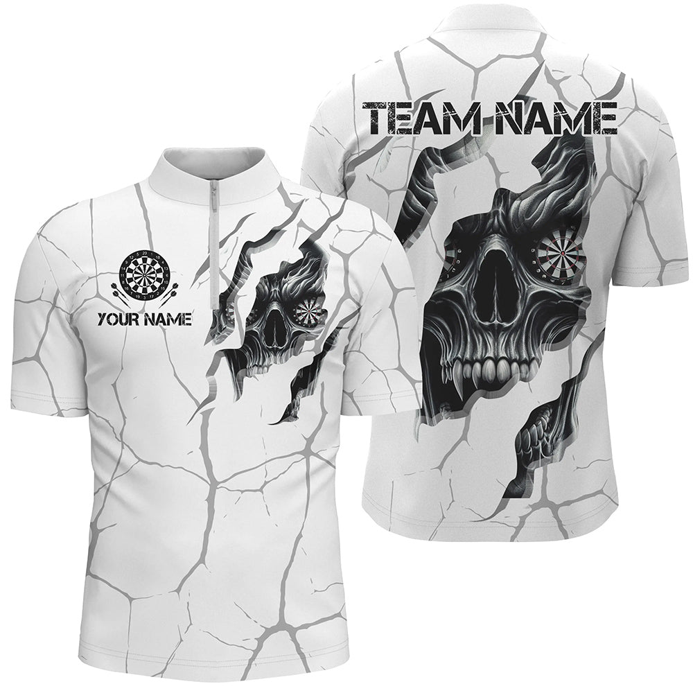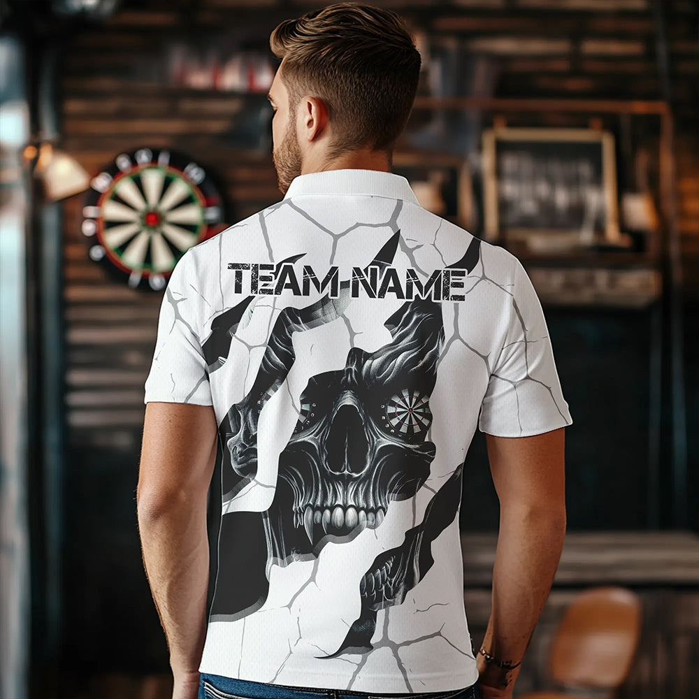 Personalized Skull White Grunge Darts Polo And Quarter-Zip Shirts For Men Custom Dart Team Jerseys TDM2922