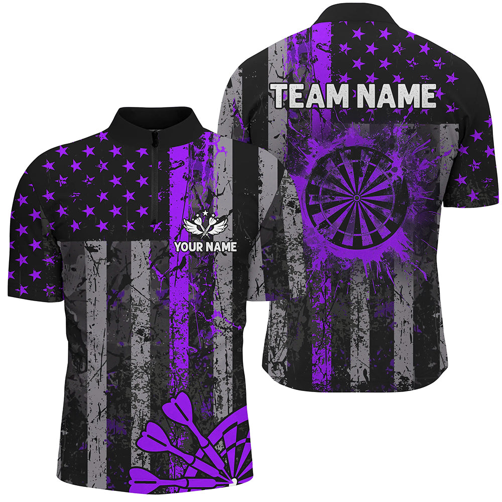 Custom Purple Grunge US Flag Patriotic Darts Shirt For Men, Retro Darts Board Darts Team Jerseys TDM2070
