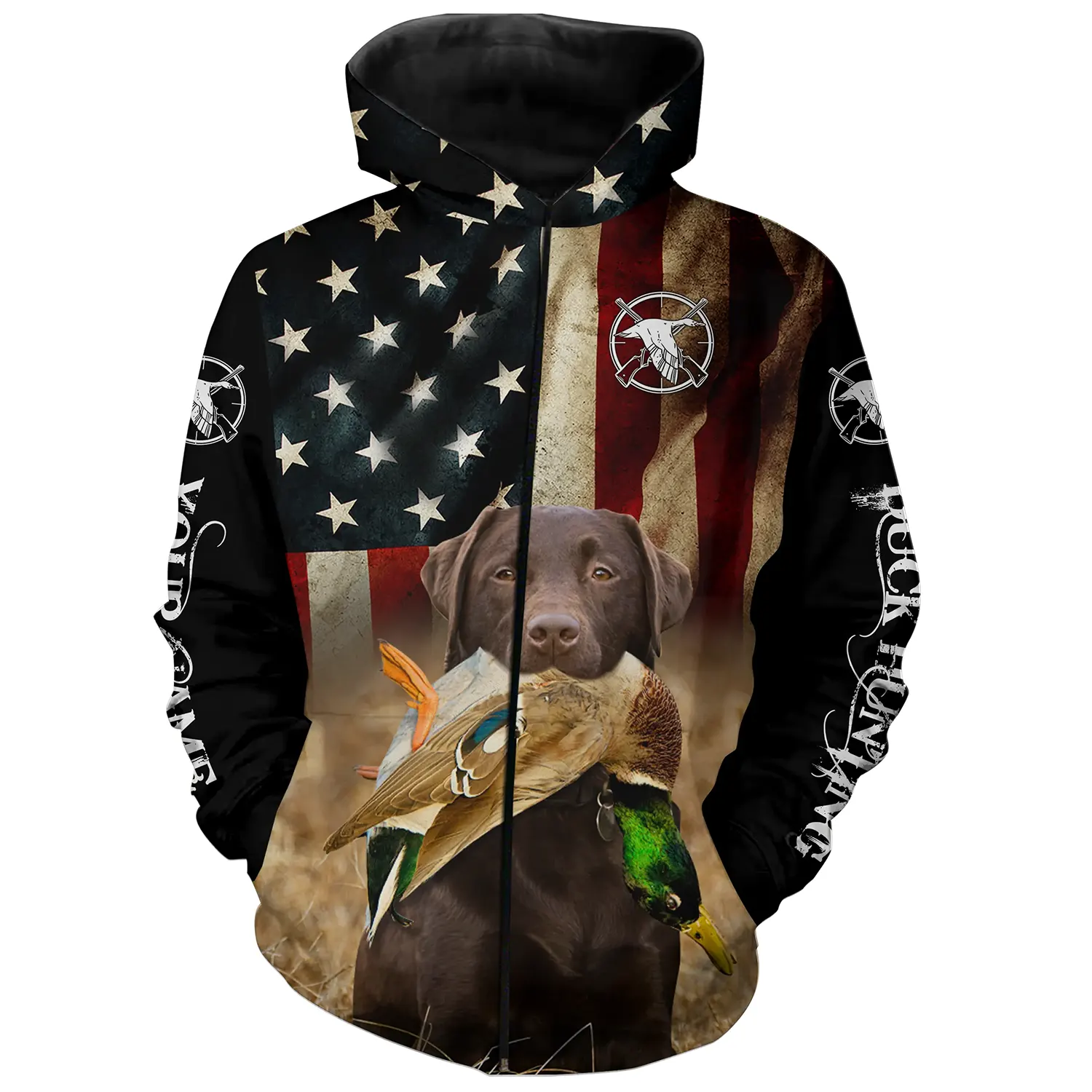Best Duck Hunting Dogs chocolate Labrador Retriever American flag 3D All over printed Shirts FSD3865