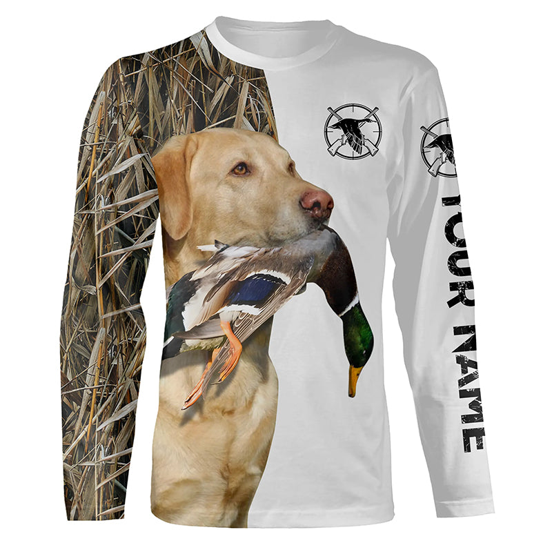 Duck Hunting With Dog Yellow Labrador Retriever Custom Name 3D All Over Print Shirt, Hoodie Personalized Hunting Gifts FSD1861