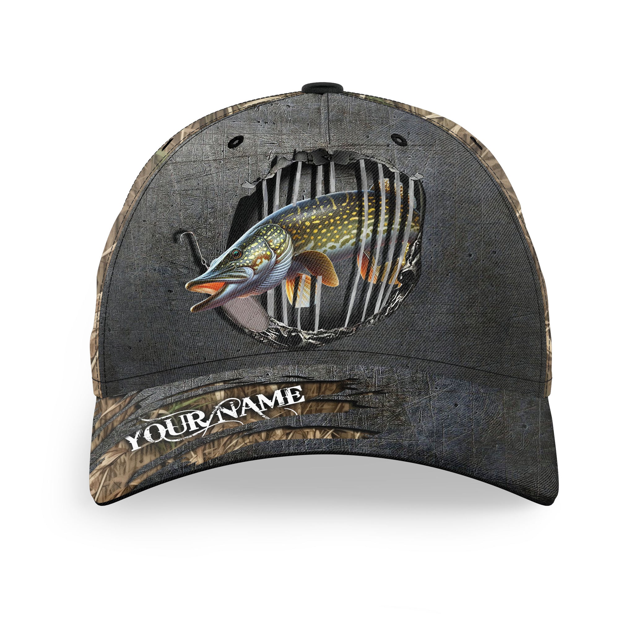 Northern Pike fishing camo Custom fishing hat Unisex Fishing Baseball Angler pike cap NQS3248
