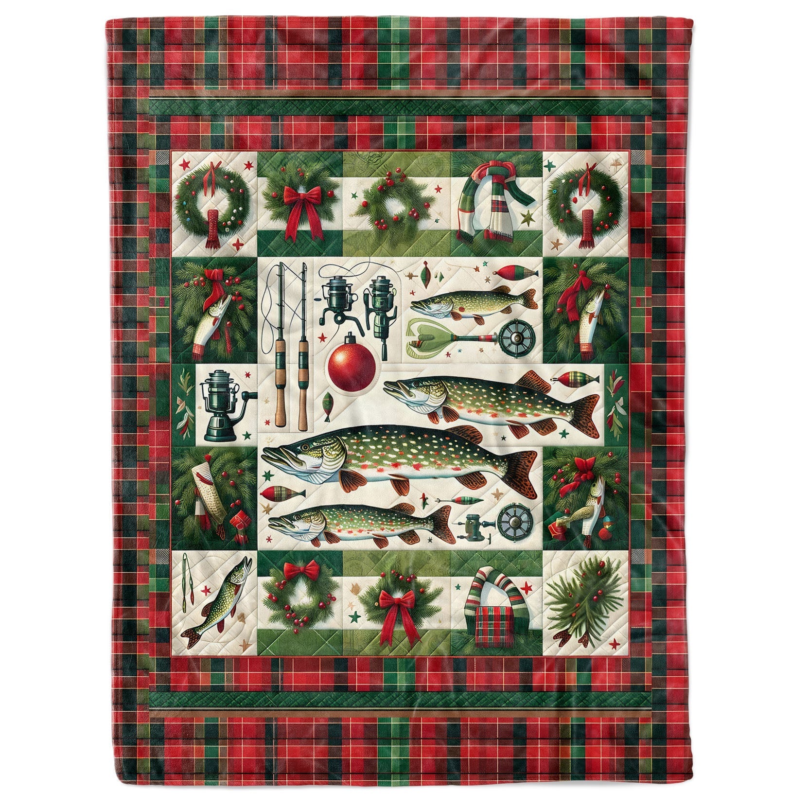 Christmas Northern Pike Fishing Fleece Blanket, Pike Xmas Fishing Gifts For Fishing Lovers IPHW5676