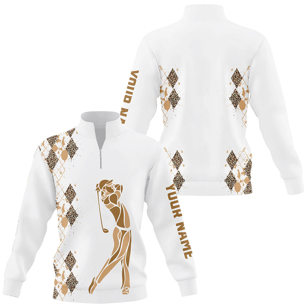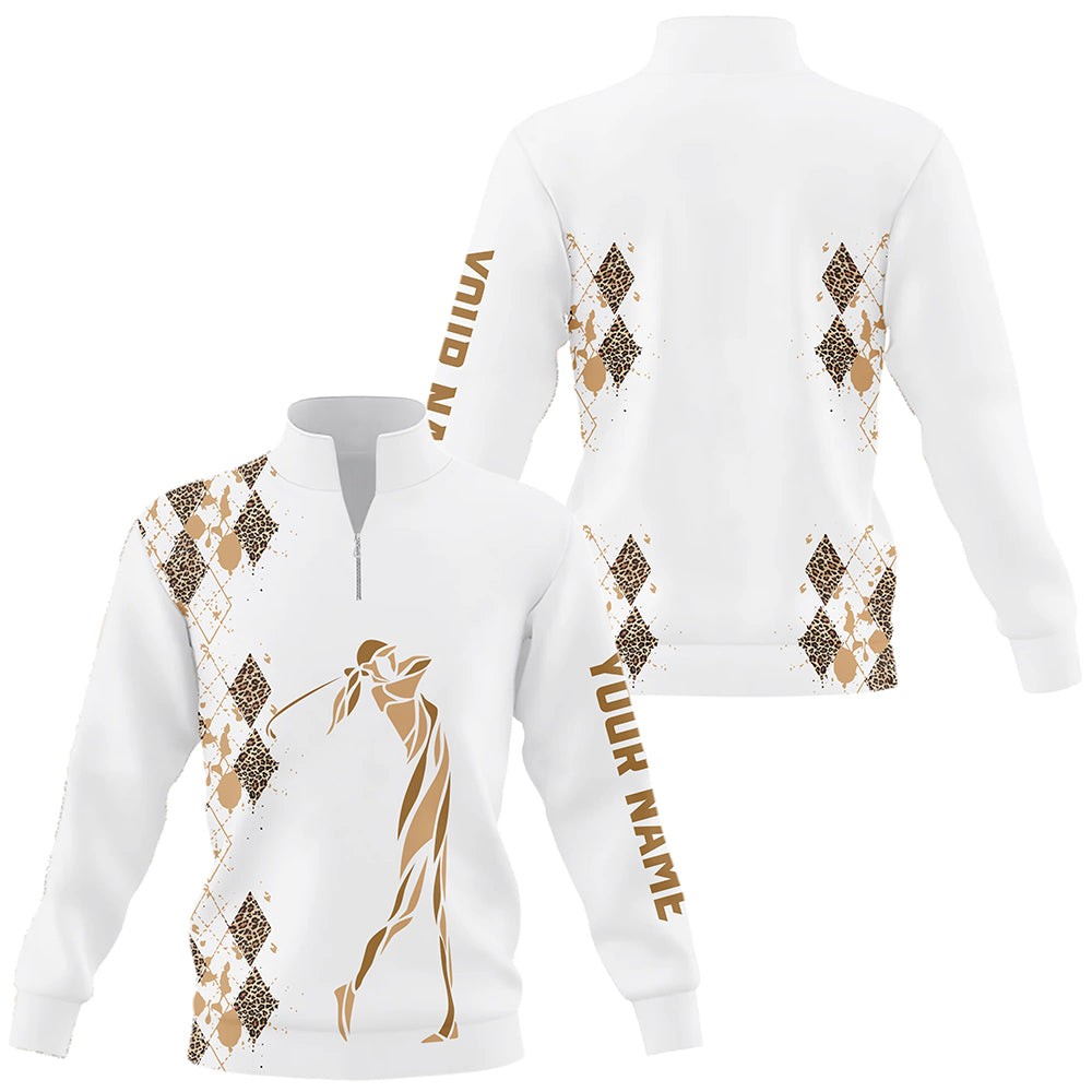 Leopard argyle pattern Quarter zip golf sweatshirt custom golf sweater for men, women unique golf gift NQS8378