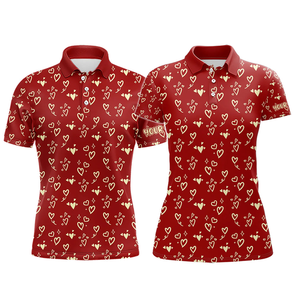 Gold Heart Red pattern matching golf shirt for couple custom Couple Valentines golf polo shirts NQS9368