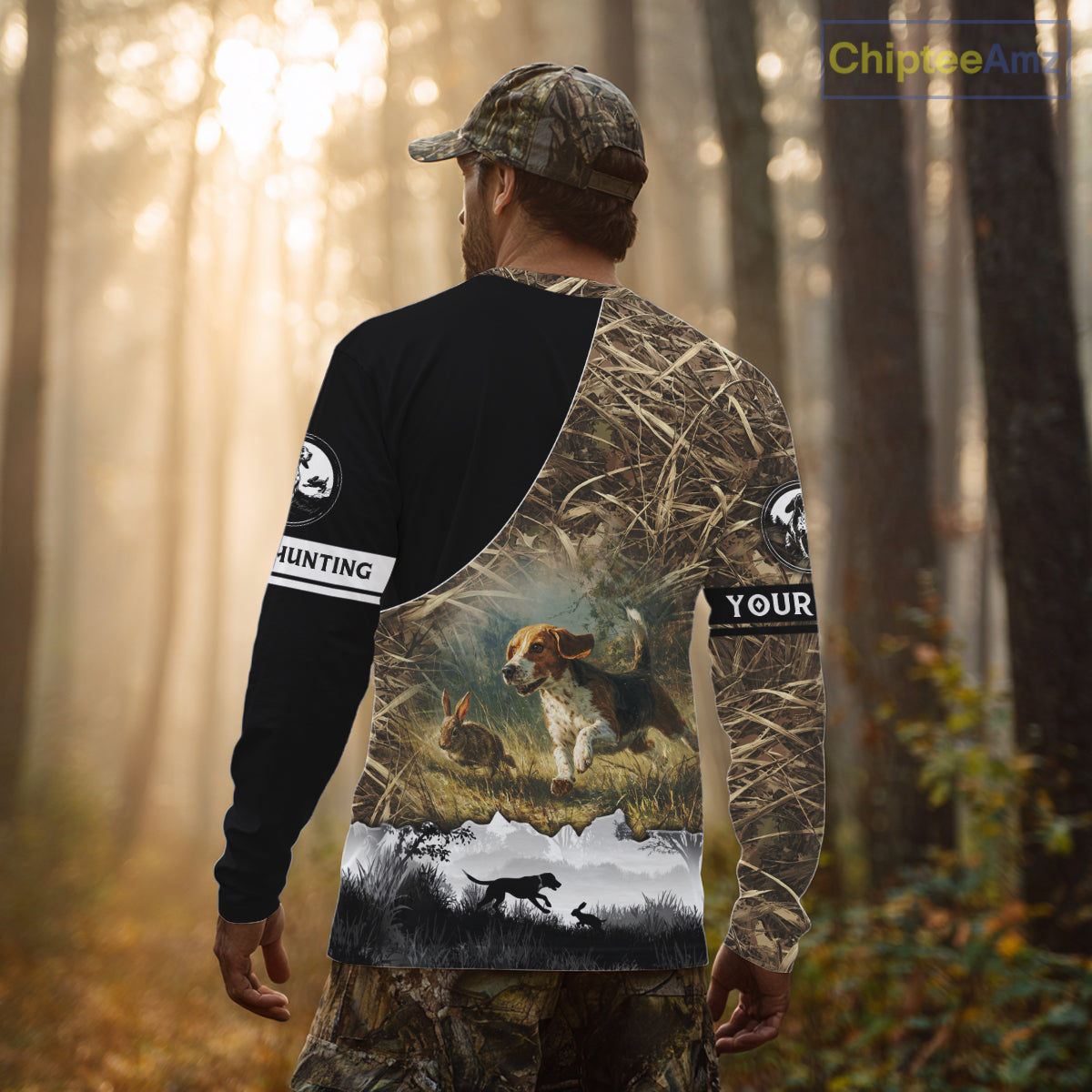 Personalized Rabbit Hunting with Beagle Dog 3D All Over Printed Shirts, Rabbit Hunting Clothes for Men NBT135
