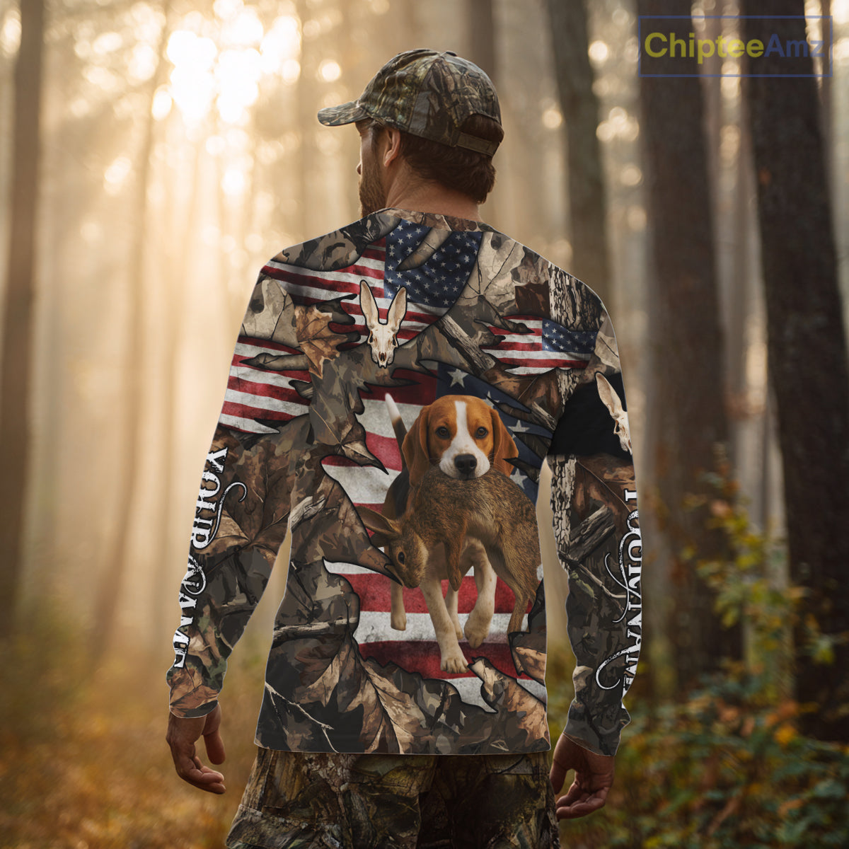 Rabbit Hunting with Beagle Skull 3D US Flag Forest Camo Custom Hunting Shirt – Hunting Gift NHT162