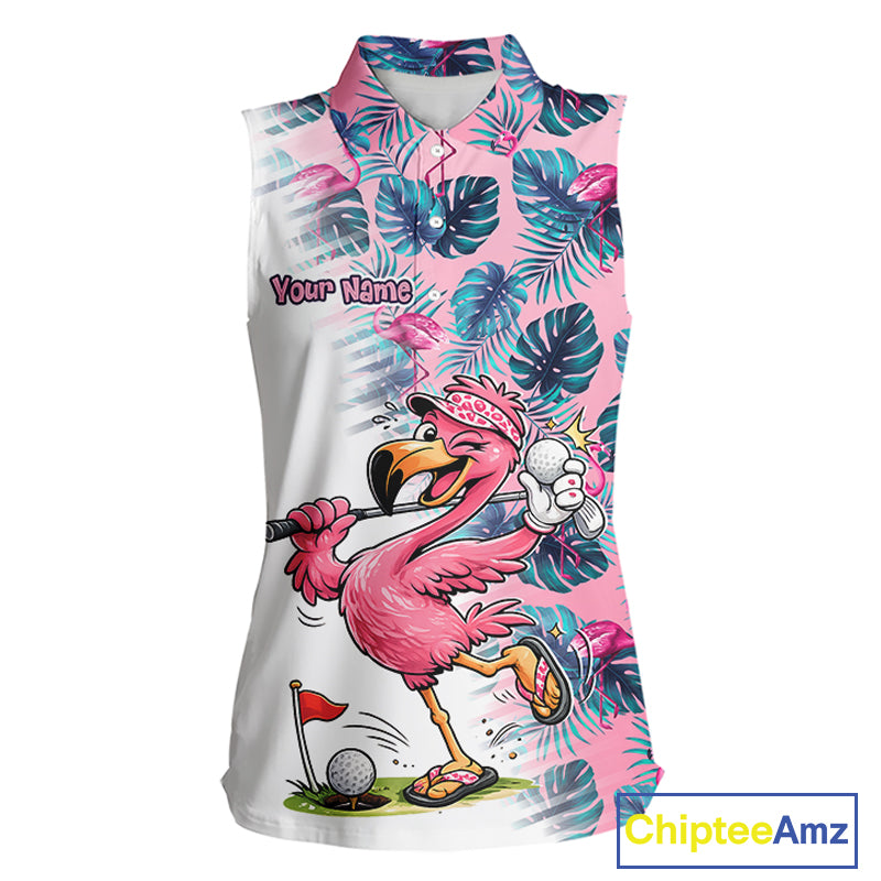 Funny Pink Flamingo Tropical With Pattern Sleeveless Womens Flamingo Golf Polo Shirt Custom Golf Shirts For Womens NHT649
