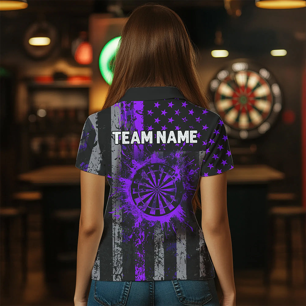 Custom Purple Grunge US Flag Patriotic Darts Shirt For Women, Retro Darts Board Darts Team Jerseys TDM2070
