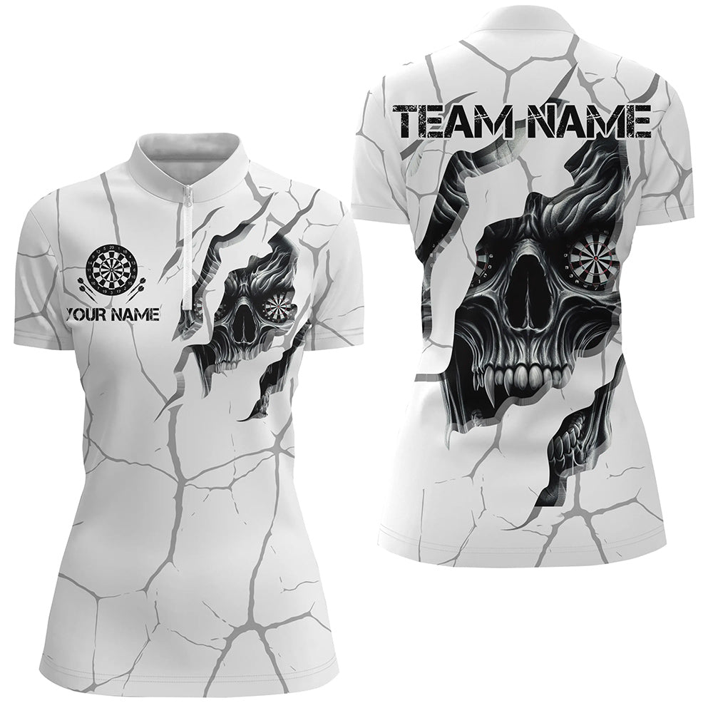 Personalized Skull White Grunge Darts Polo And Quarter-Zip Shirts For Women Custom Dart Team Jerseys TDM2922