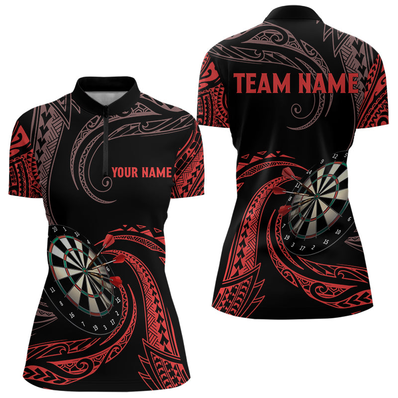 Personalized Red Tribal Darts Polo & Quarter Zip Shirts Custom Women Darts Shirts Dart Jerseys TDM3185