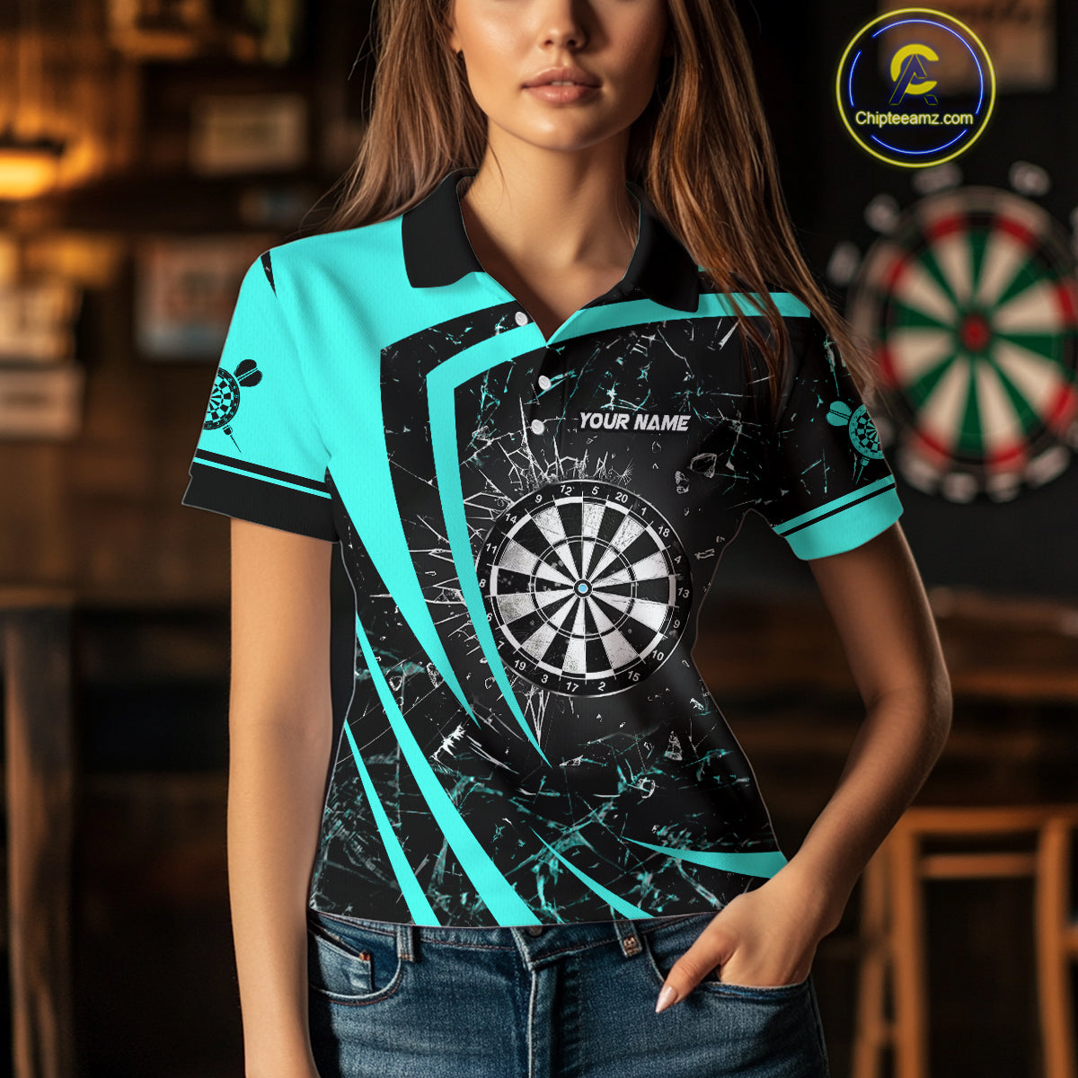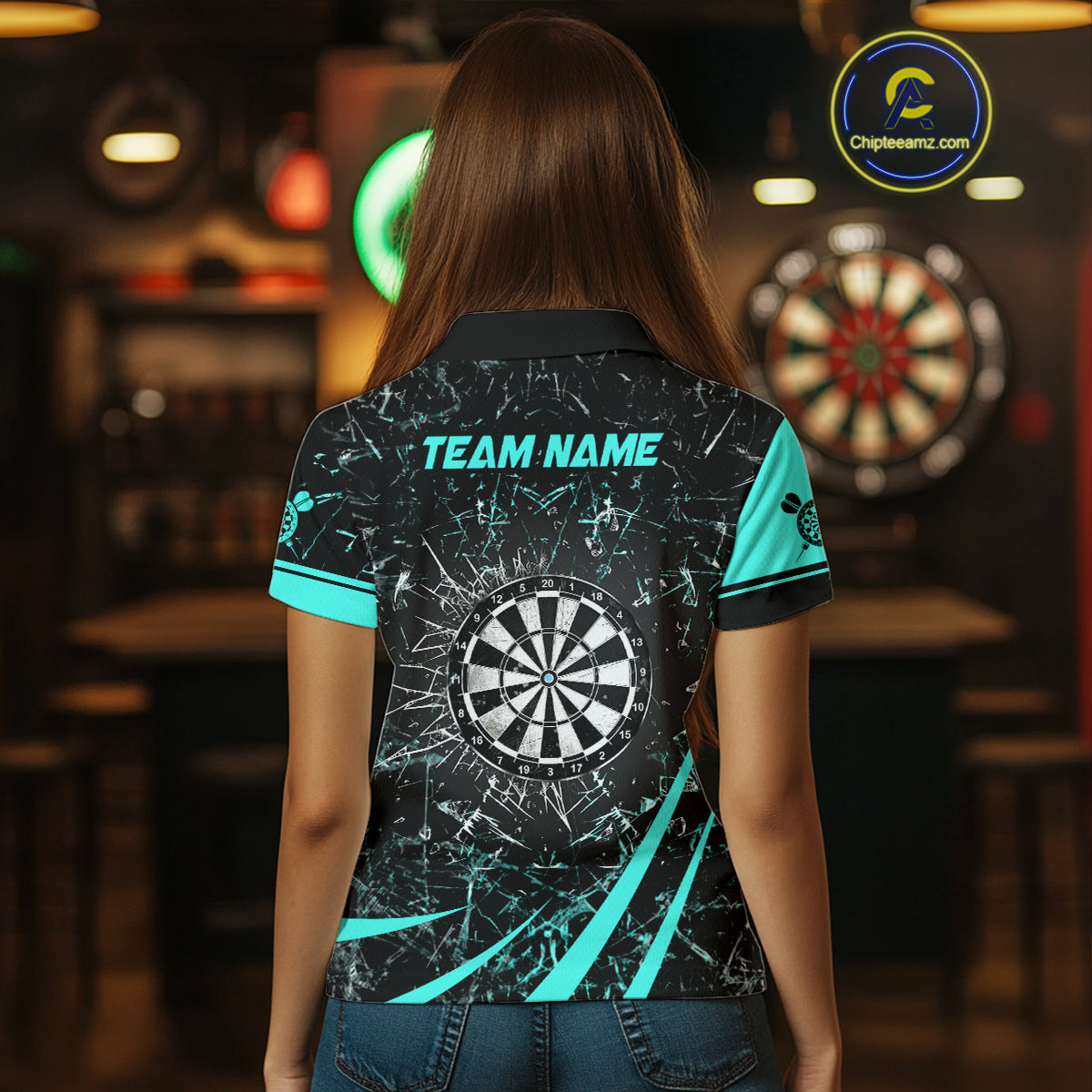 Personalized Turquoise Break Glass Dart Shirts For Women Custom Funny Dart Jerseys Polo & 1/4 Zip TDM3876