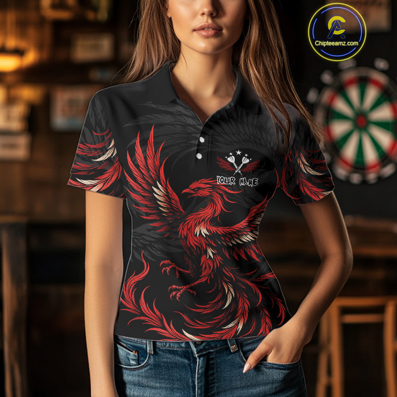 Personalized Phoenix Dartboard Wings Women's Dart Shirts Custom Red And Black Darts Team Jerseys TDM4118