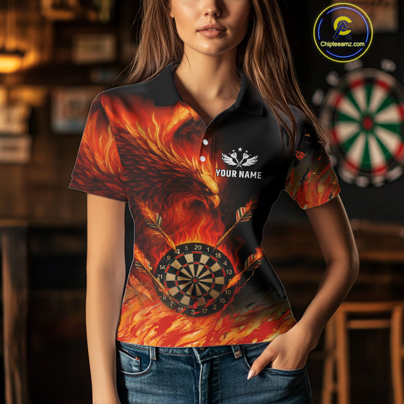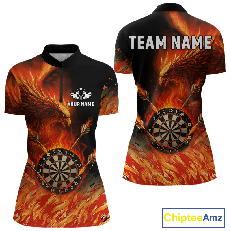 Orange Flaming Phoenix Darts Jerseys Custom Darts Shirt For Women, Darts Team Polo & Quarter Zip TDM4290