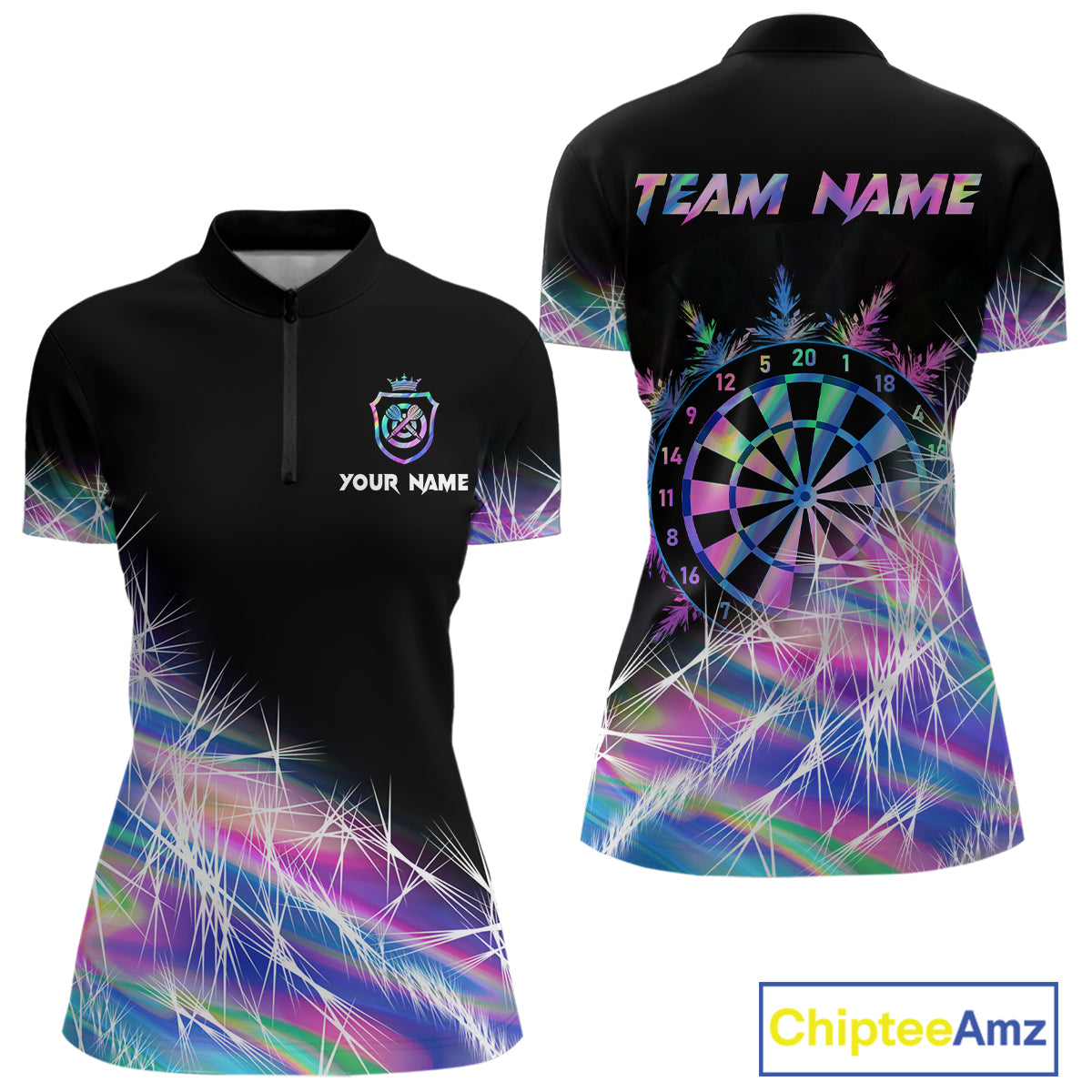 Holographic Icy Lights Women Darts Polo & Quarter Zip Custom Dart Shirts For Team Darts Jerseys TDM4641