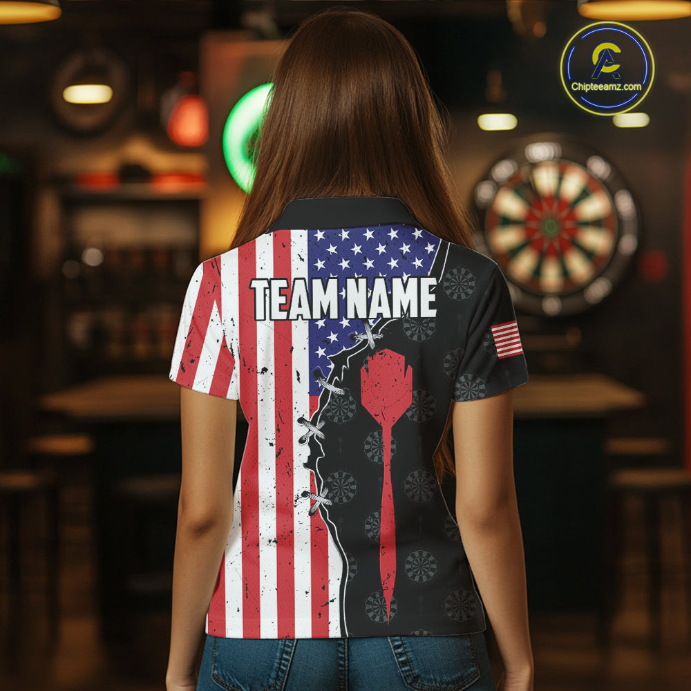 Retro American Flag Patriotic Darts Shirt For Women Custom Darts Team Jersey Polo & Quarter Zip TDM5388