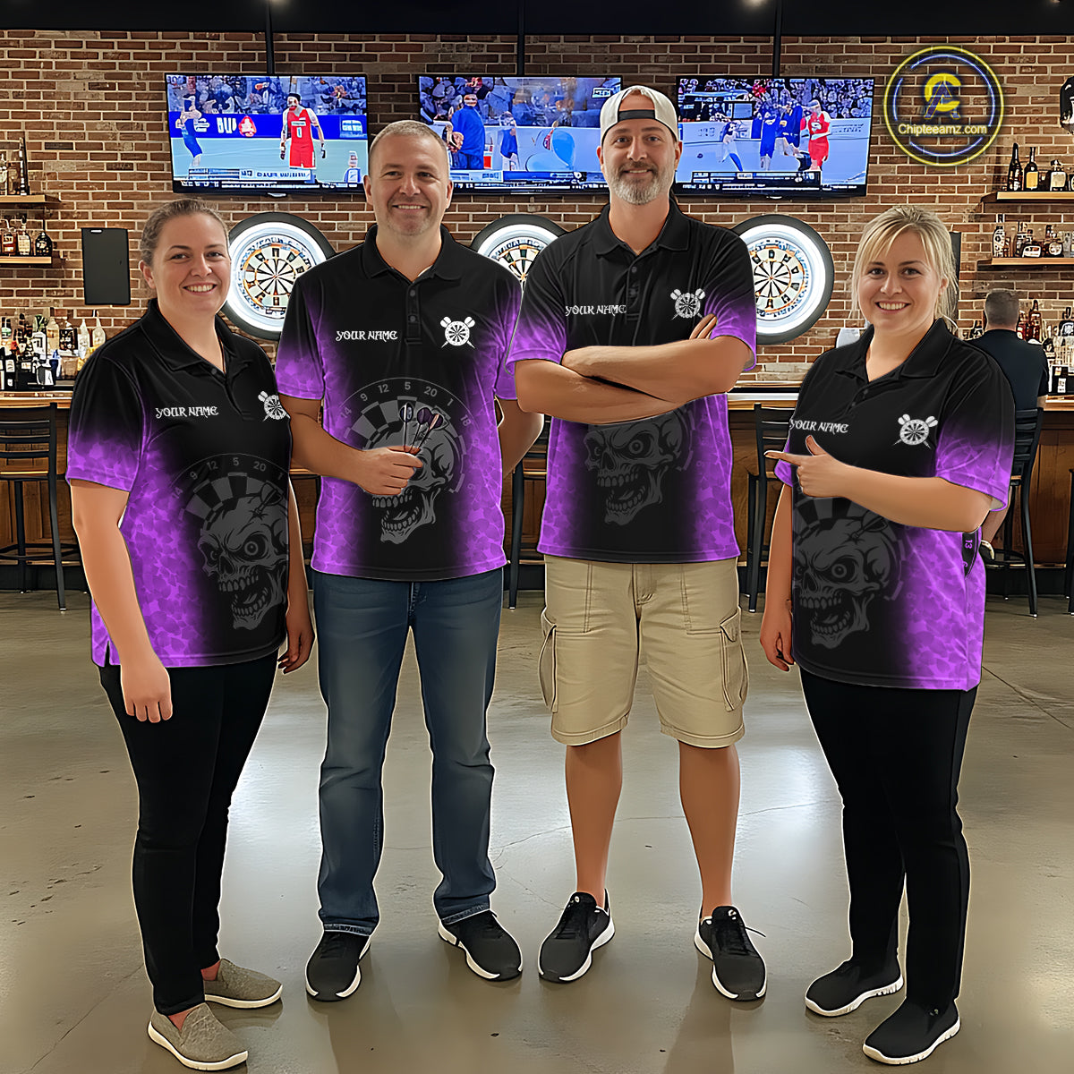 Black And Purple Custom Skull Darts Shirt For Women, Darts Jersey Pocket Option TDM5440