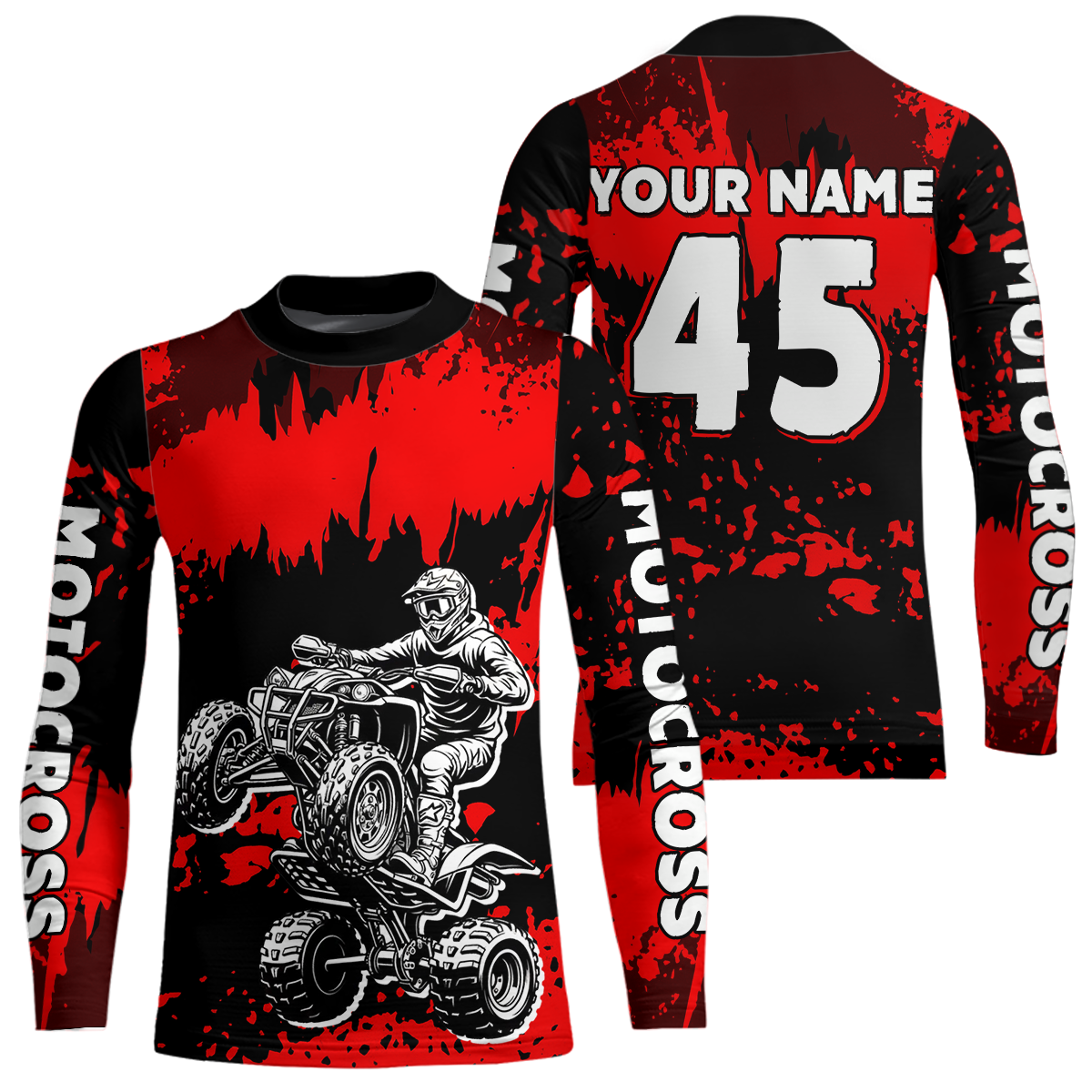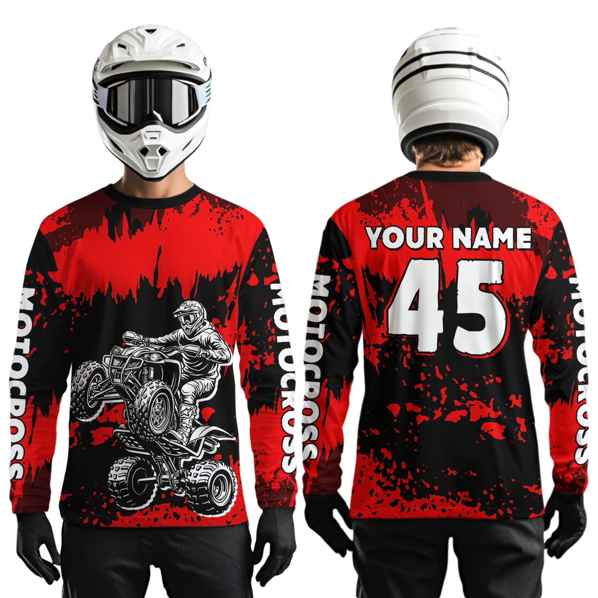 Red ATV Motocross Jersey Kid Adult Custom Quad Bike Jersey Off-Road Shirt UPF30+ DNT59